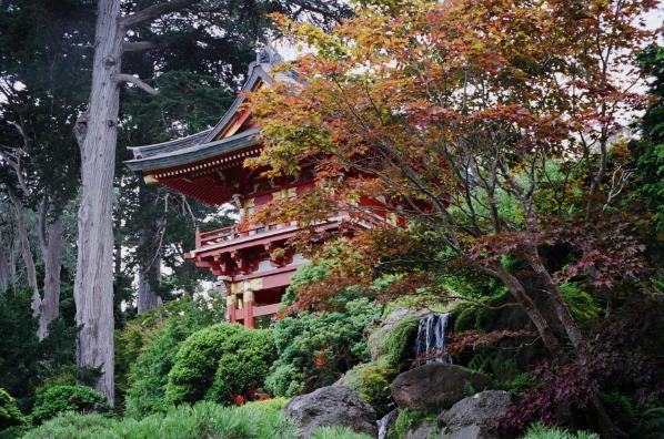 Red Building, Japanese Tea Garden at Golden Gate Park, San Francisco.