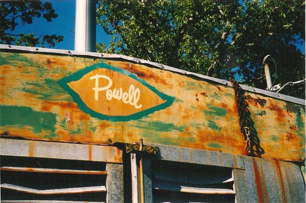 at painting over the yellow "Powell" lettering and green tobacco leaf