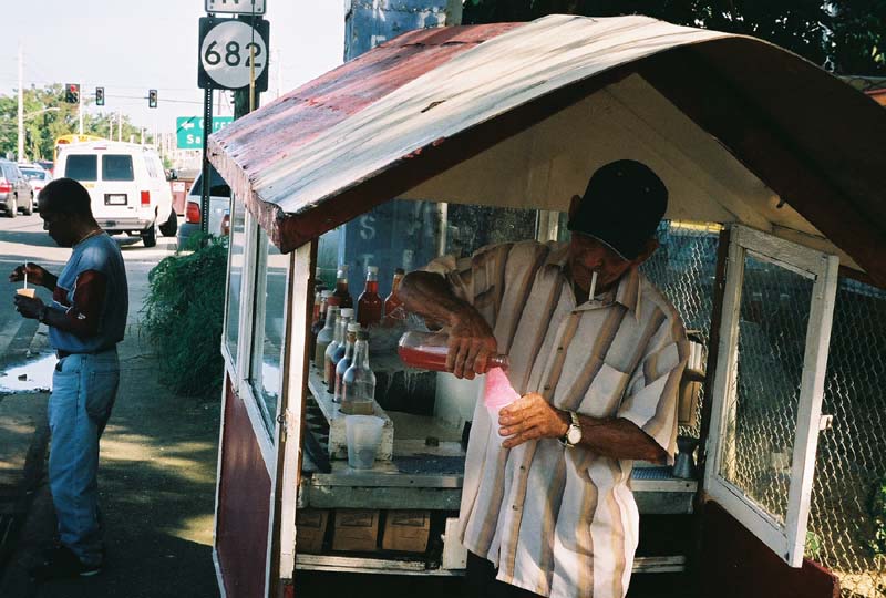 trade probably more than 30 years. He sells "piraguas", crushed ice