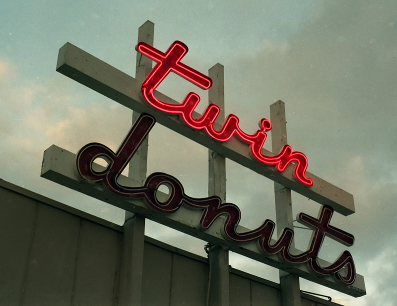daybreak so I could catch the Twin Donuts neon sign lit up. The place