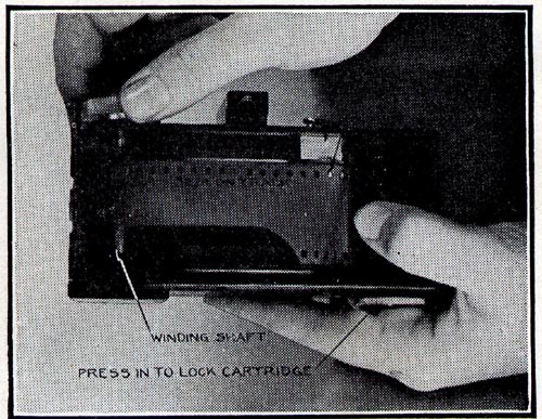 the rewind knob and engage sprockets in perforations so film lies flat and
