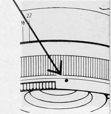 SLIGHTLY FROM CAMERA MOUNT, KEEPING TEETH OF RANGEFINDER WHEEL AND