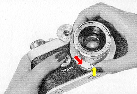 lens-lock release (yellow arrow) as shown. Then give the lens a
