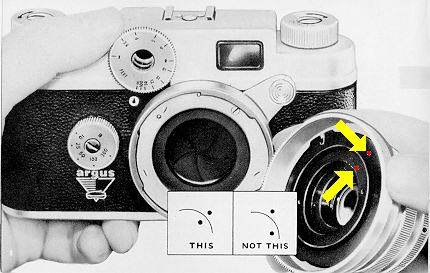 dot with the camera's rangefinder index mark. Place lens on mount,