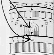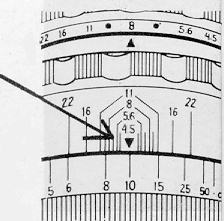 SLIGHTLY FROM CAMERA MOUNT, KEEPING TEETH OF RANGEFINDER WHEEL AND